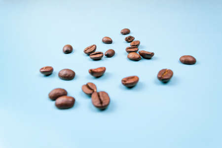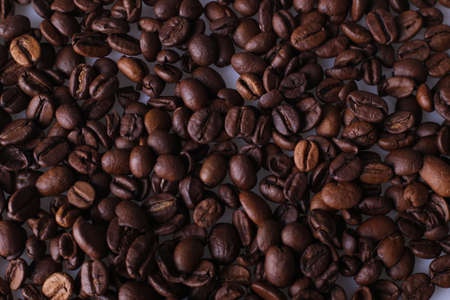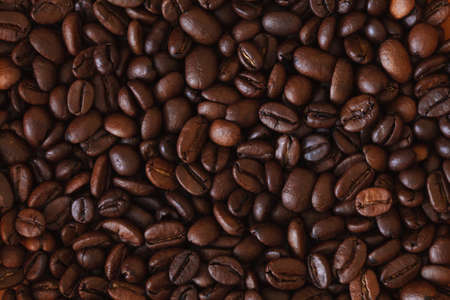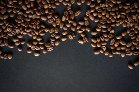 Coffee grains. Background of roasted coffee beans brown. layout.