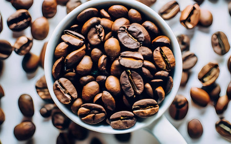 High-Quality Studio Shot of Roasted Coffee Beans Overhead View Showcasing Rich Aroma and Texture