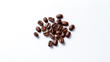 Isolated roasted coffee beans on a white background, offering ample space for custom messages or coffee product promotions.