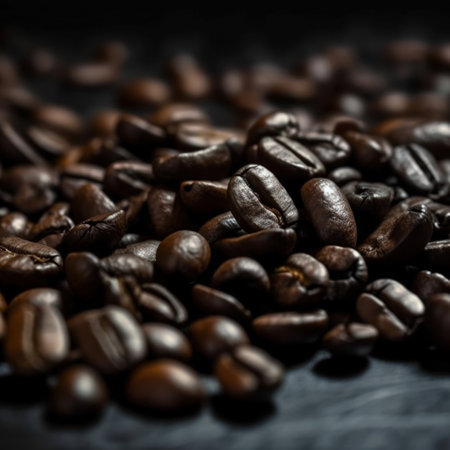 A macro shot of roasted coffee beans, highlighting their rich texture and deep brown color.