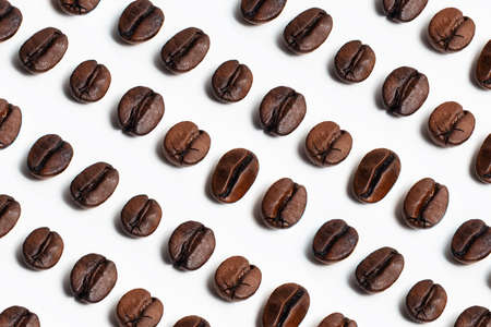 Coffee beans isolated on white background with copyspace for text. Coffee background or texture concept