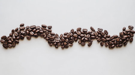 roasted coffee beans forming a wave pattern on a clean white background generative ai