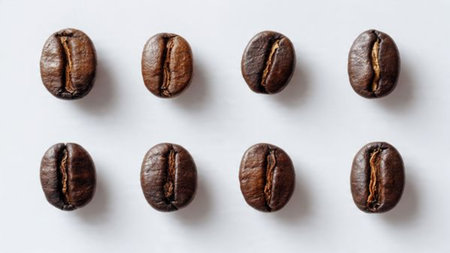 Close-Up of Coffee Beans on White Background Highlighting Texture and Detail
