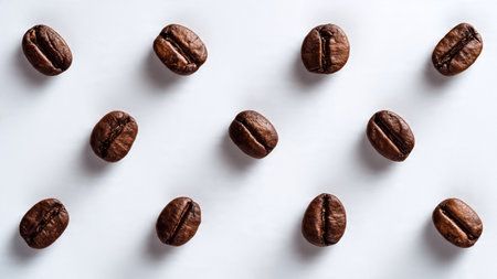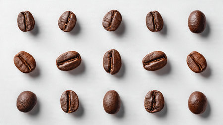 This is a visually appealing arrangement of rich coffee beans meticulously placed on a pristine, white background, making it ideal for those who truly love coffee and for stunning product displays