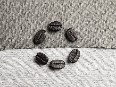 cup of coffee with brown beans on a gray background close-ups macro photography