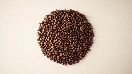 A captivating circular pattern of roasted coffee beans, perfect for coffee-related themes. Ideal for showcasing natural beauty and gourmet quality.