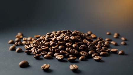 AI Generated. a pile of fresh coffee beans lying on a dark background