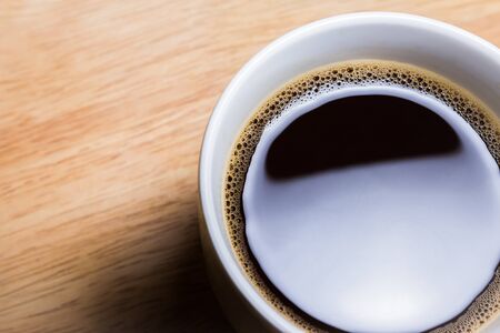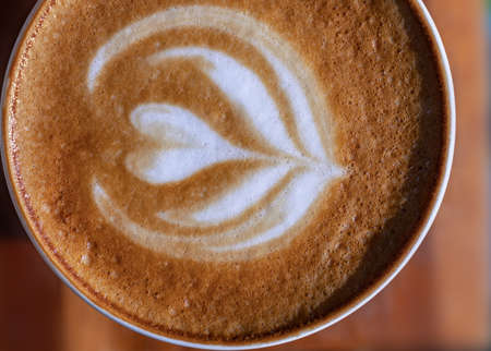 Close up Coffee froth on a hot coffee cup. Ready to drink hot cofffee