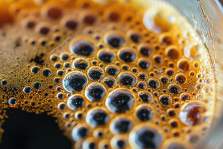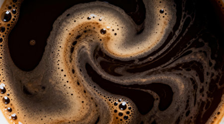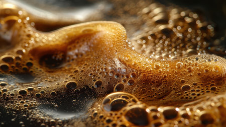 A macro shot of coffee with bubbles and foam, showcasing the texture and details.