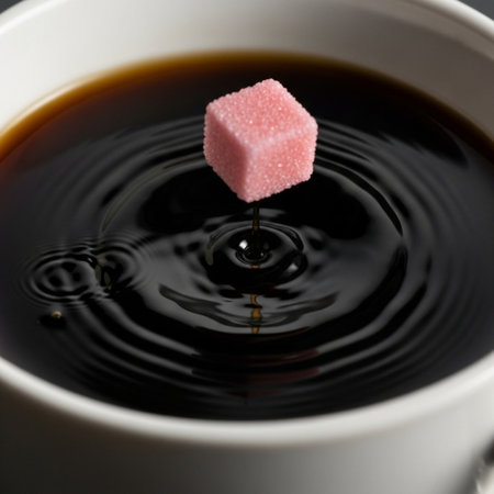 A white coffee cup overflowing with rich brown coffee as splashes rise dramatically, symbolizing energy and excitement.