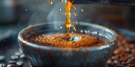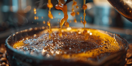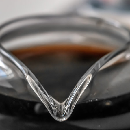 Editorial extreme close-up photograph capturing the meticulous ritual of specialty coffee brewing. A