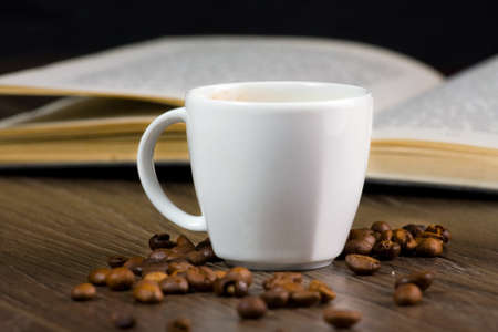 Coffee concept for design and advertisement: Coffee cup, coffee beans, coffee break