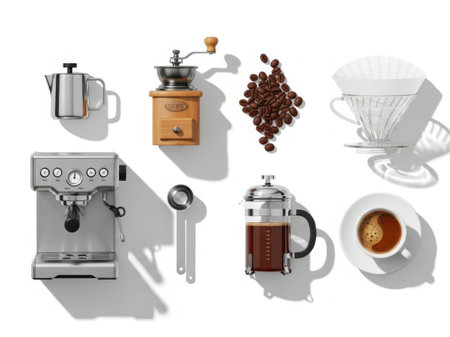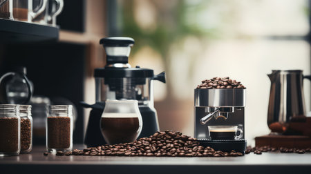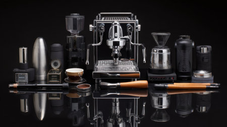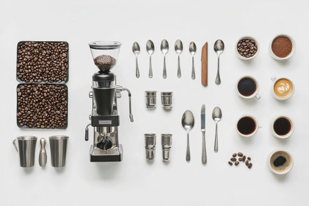 Explore a stunning array of coffee equipment and accessories including an espresso machine, grinder, and tools, perfect for any coffee enthusiast seeking quality and style.