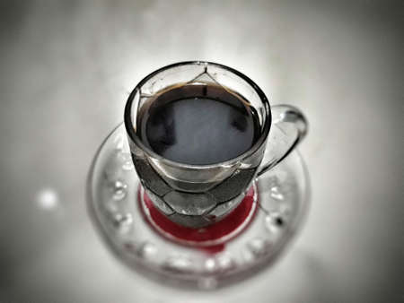Cup of coffee on a white background. Shallow depth of field