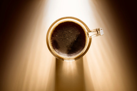 Top up view isolated hot black coffee isolated on dark table. added copy space for text.