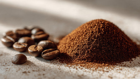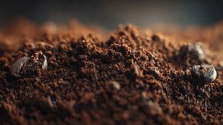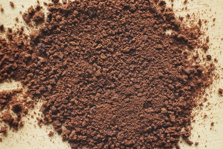 Close-up view of coffee grounds showcasing fine texture and rich colors against a bright background