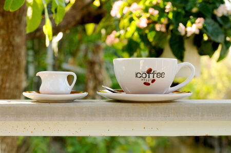 Beautiful fresh relax morning coffee cup set - Coffee set background concept