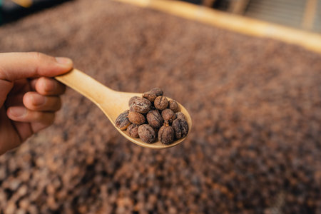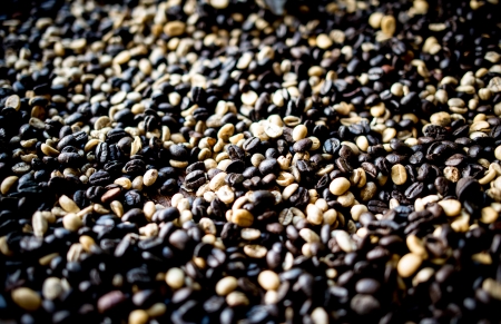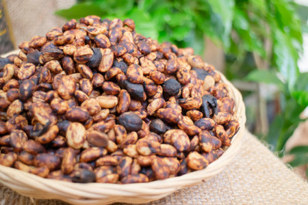 Detail of the raw Kopi Luwak coffee beans on the coffee farm