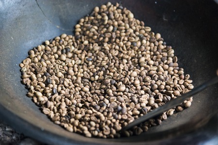 Third processing of vintage coffee bean by roasted in clay pot over charcoal