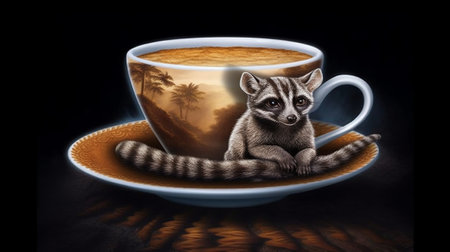 The animal, used for the production of expensive most gourmet coffee Kopi Luwak. Set on a theme. Mug the beach, fried grains