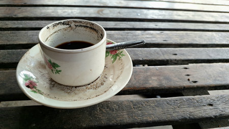 Coffee grounds grains that stick to the edge of the cup. Typical Indonesian Javanese Coffee. Original coffee with simple processing