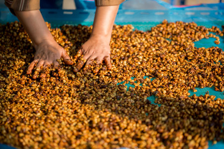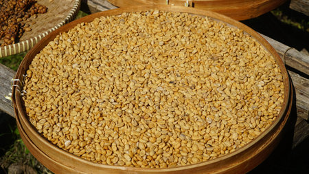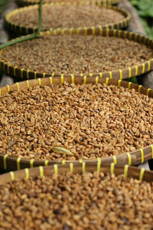 Indonesian Kopi Luwak or Civet Coffee is placed under sunlight to dry before washed, grind, and roasted.