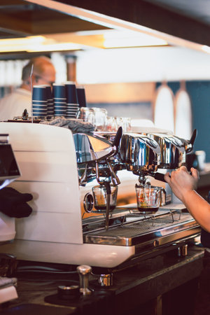 Coffee machine making espresso shot Bar restaurant shop Cafe business