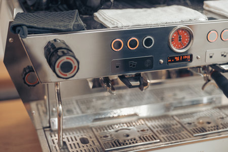 Closeup of professional coffee maker in a coffee shop