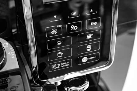 part of black coffee machine with program buttons. a device for making coffee.