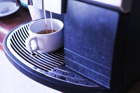 Close-up coffee cup in a coffee machine. Making coffee in a coffee machine.