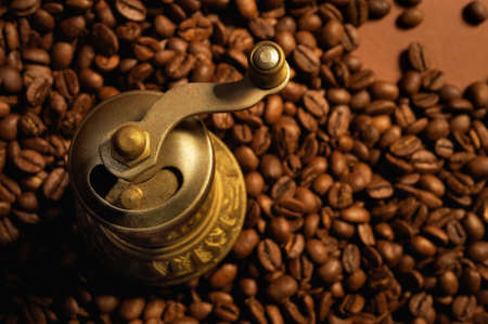 Coffee background with coffee mill.