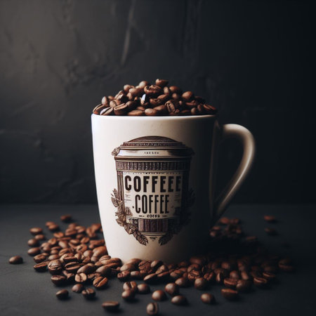 brown roasted coffee beans and coffee cup