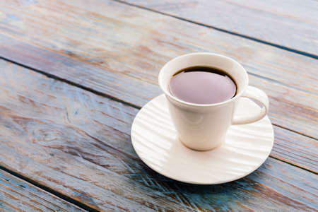 Soft focus blur Hot coffee cup of black,coffee on wooden table in the morning.