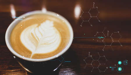 A cup of latte on a wooden table in a cafe on a cold working morning