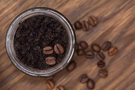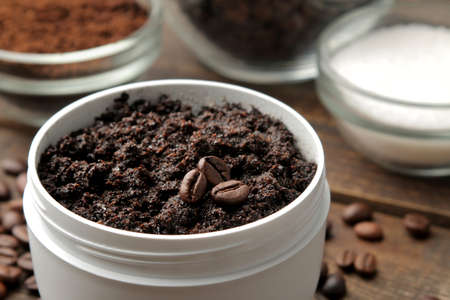 Close up view of cosmetological coffee scrub