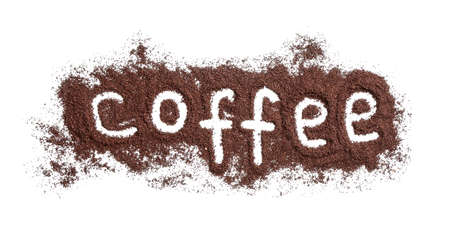 Coffee powder forming the word coffee on beige background