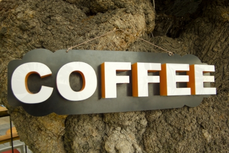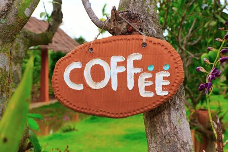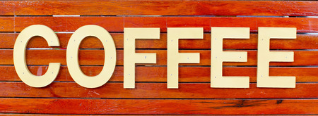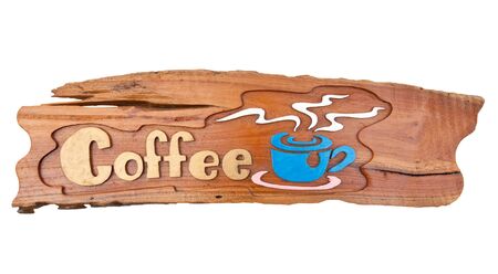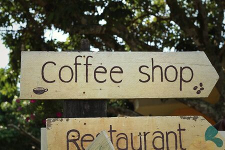 Wooden Retro Coffee Shop Sign, Selective Focus And Close Up