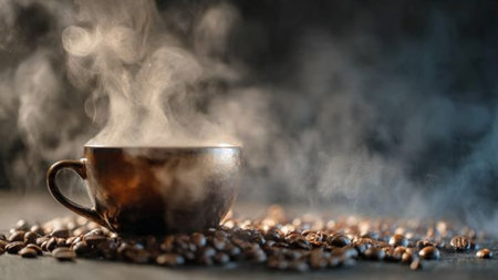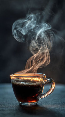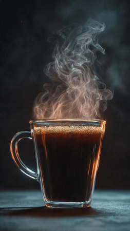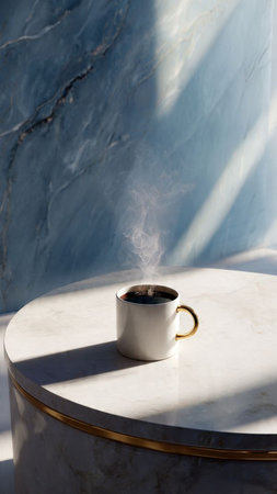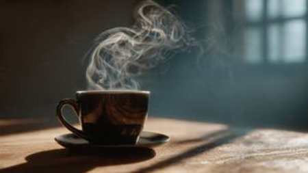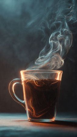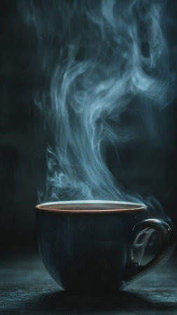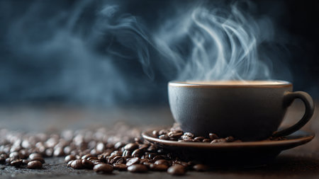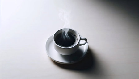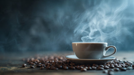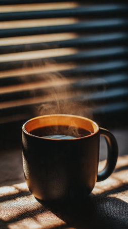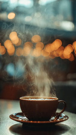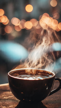 A cozy scene featuring a steaming cup of coffee against a soft background, ideal for evoking feelings of warmth and comfort during mornings or breaks.