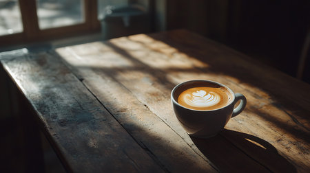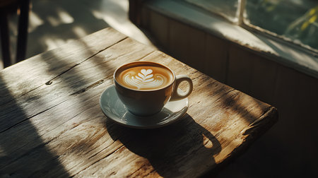 Explore the beauty of latte art captured in sunlit coziness evoking warmth and creativity.