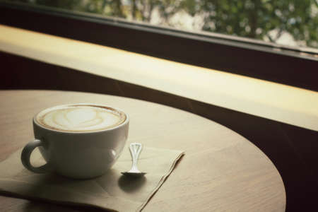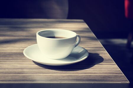 cup of coffee on table in cafe shop. fresh drink since morning background