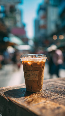 Iced coffee in a plastic cup on the street in Hong Kong