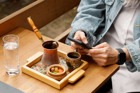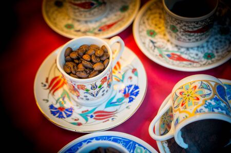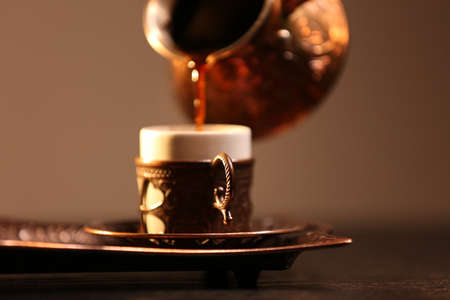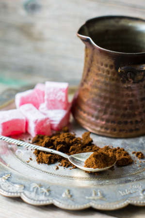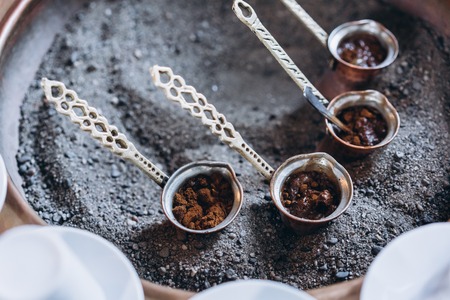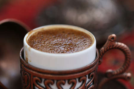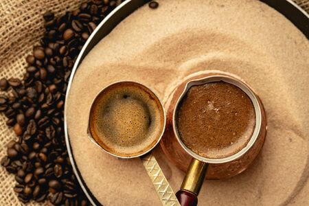 Traditional Turkish coffee. Coffee in the oriental style vintage. Selective focus