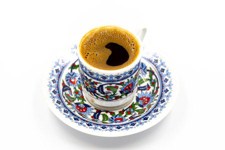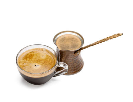 Turkish coffee isolated on white background. Traditional Turkish cuisine flavor. close up