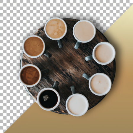Aerial perspective of diverse coffee varieties creating a rich coffee themed background