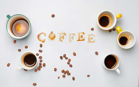 Word COFFEE made of coffee stains on light background