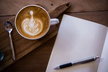 cappuccino or Latte art coffee made from milk on the wood table in coffee shop