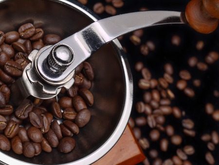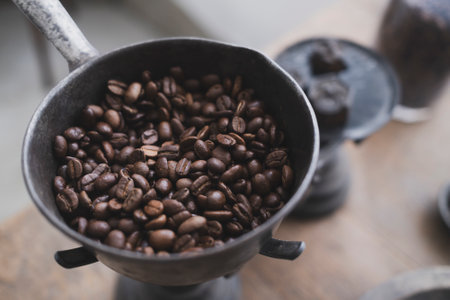 coffee beans in grinder, vintage style