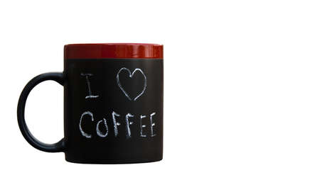 Hugs and kisses inscription on a white cup on a red knitted fabric. love concept. St. Valentine's Day