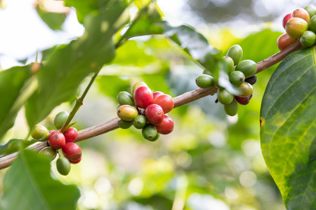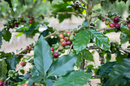 Coffee beans ripening on tree in North of thailand