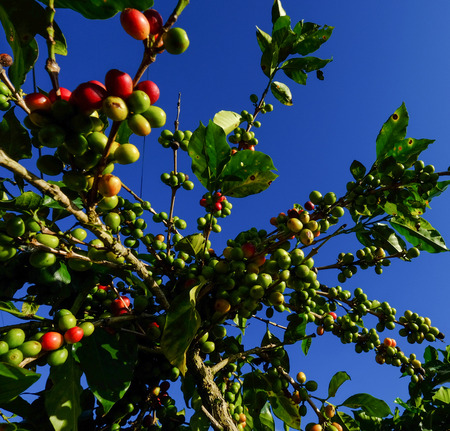 Coffee beans ripening on a tree